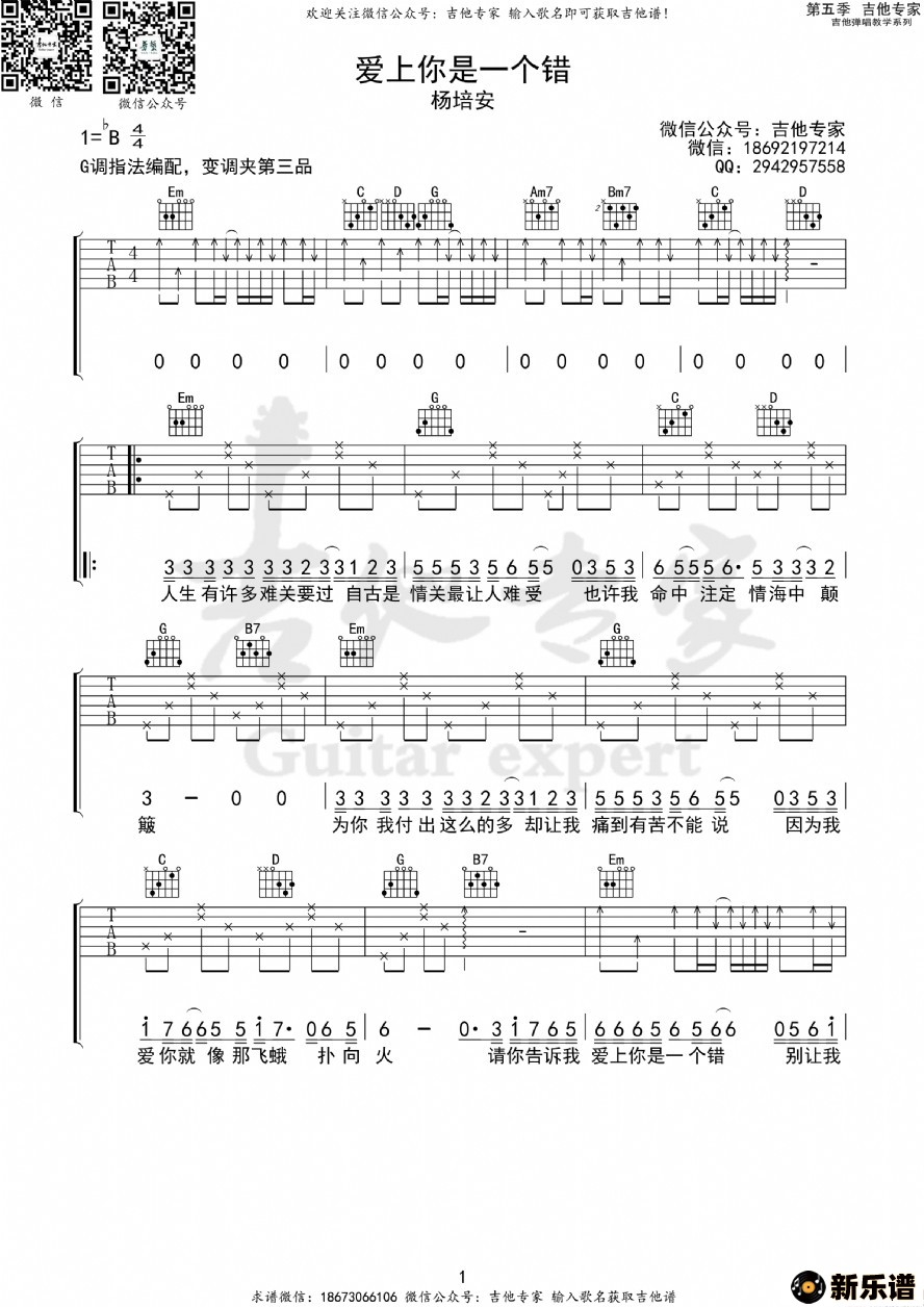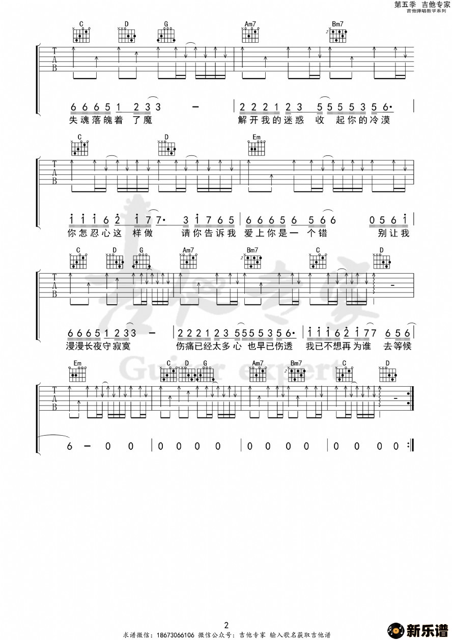《爱上你是一个错》吉他谱 -吉他专家制谱
