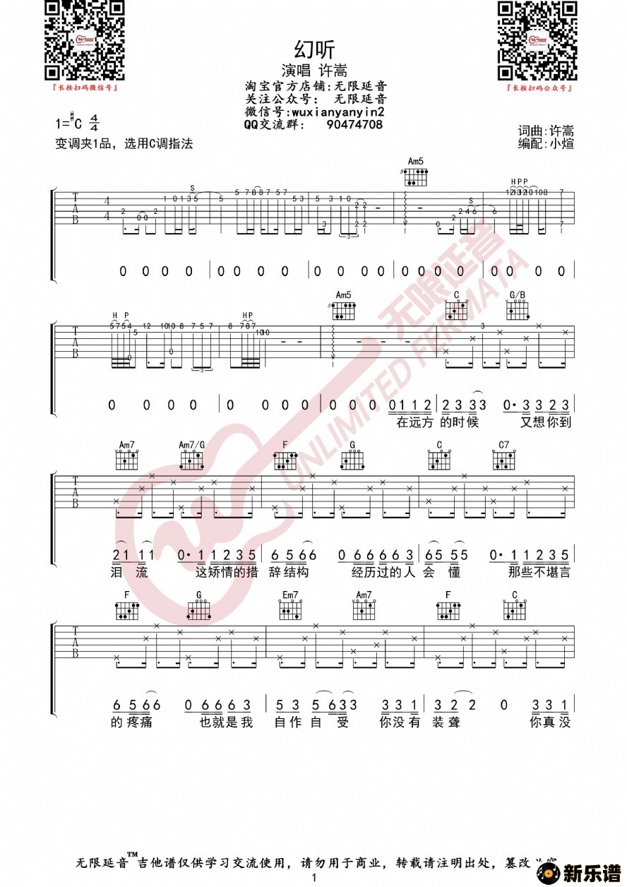 《许嵩 幻听 吉他谱》吉他谱 -无限延音制谱