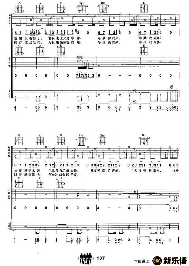 演唱的谁伴我闯荡歌词,谁伴我闯荡吉他谱.