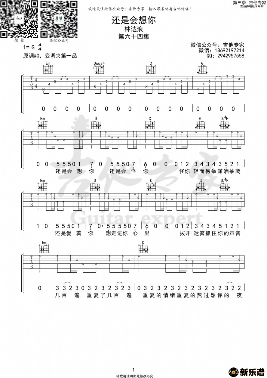 演唱的还是会想你歌词,还是会想你吉他谱.