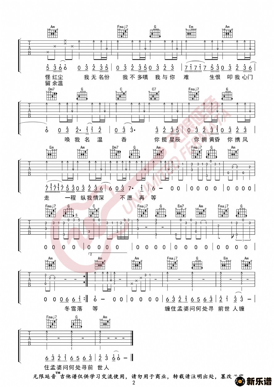《dawn 难生恨 吉他谱》吉他谱 dawn-无限延音制谱