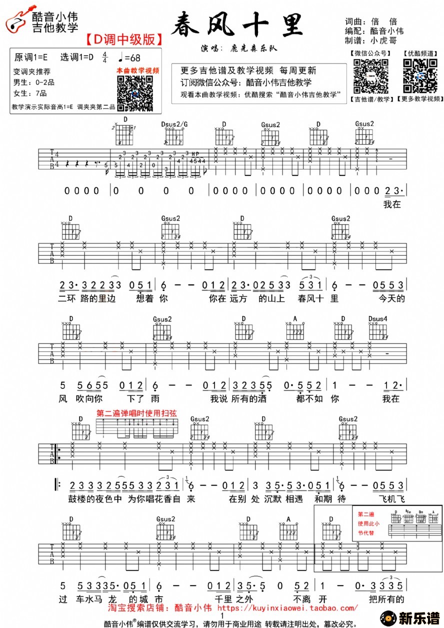 鹿先森乐队《春风十里》吉他谱_吉他弹唱教学_中弦音乐e调版吉他谱