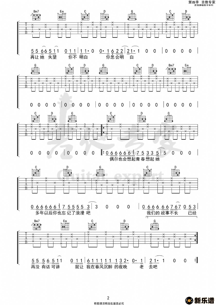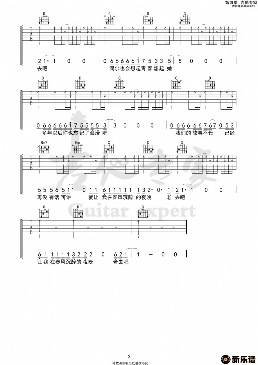 > 就让我在春风沉醉的夜晚老去吉他谱