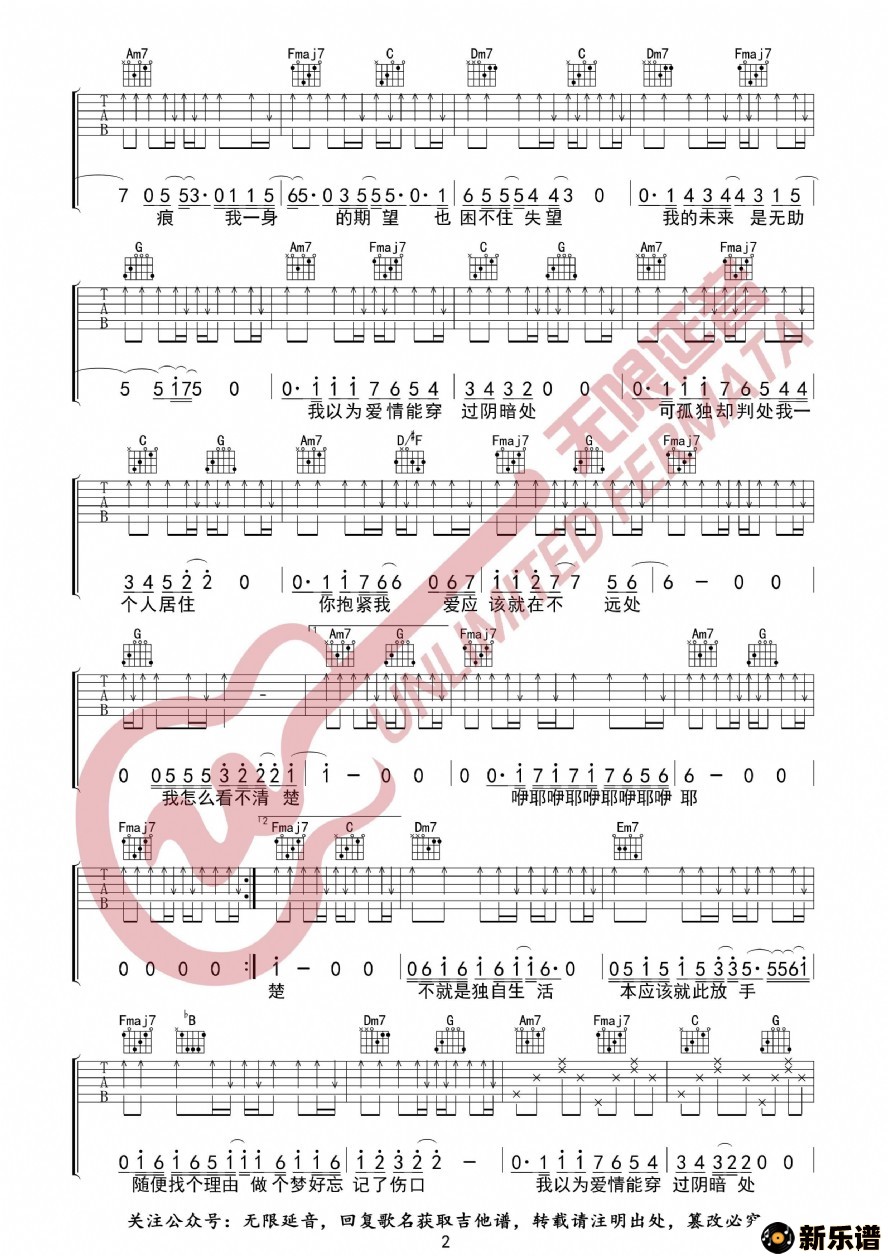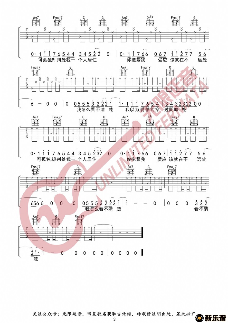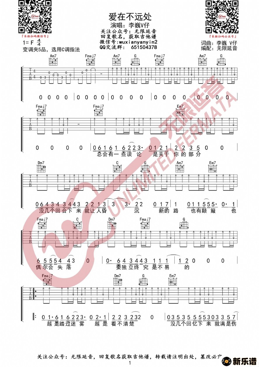 《李巍v仔 爱在不远处 吉他谱》吉他谱 李巍v仔-无限延音制谱