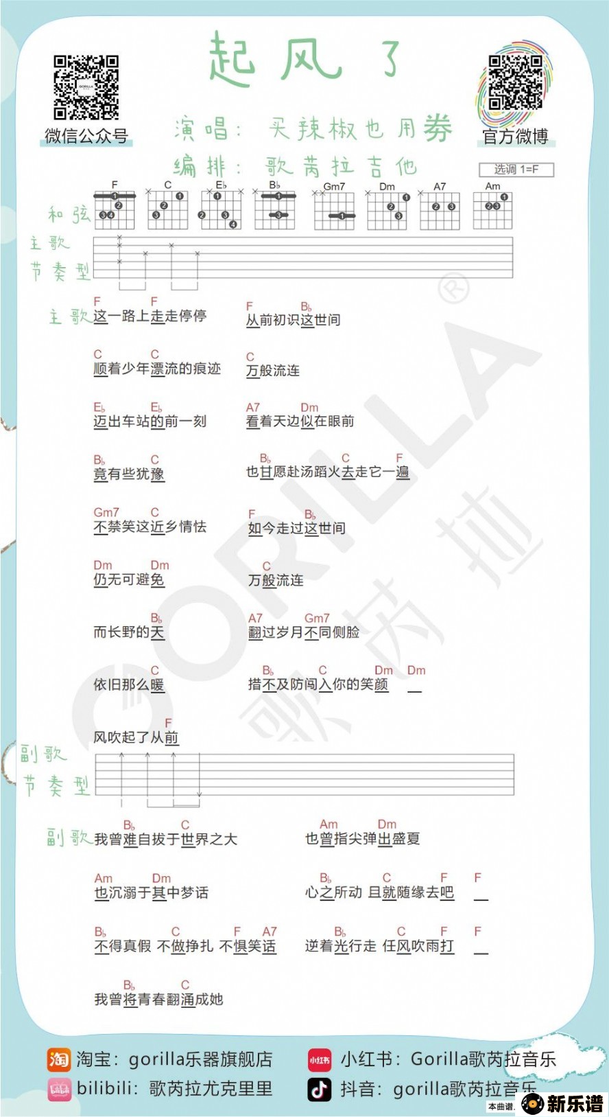 买辣椒也用劵演唱的《起风了》吉他曲谱歌词,《起风了》吉他曲谱吉他谱.