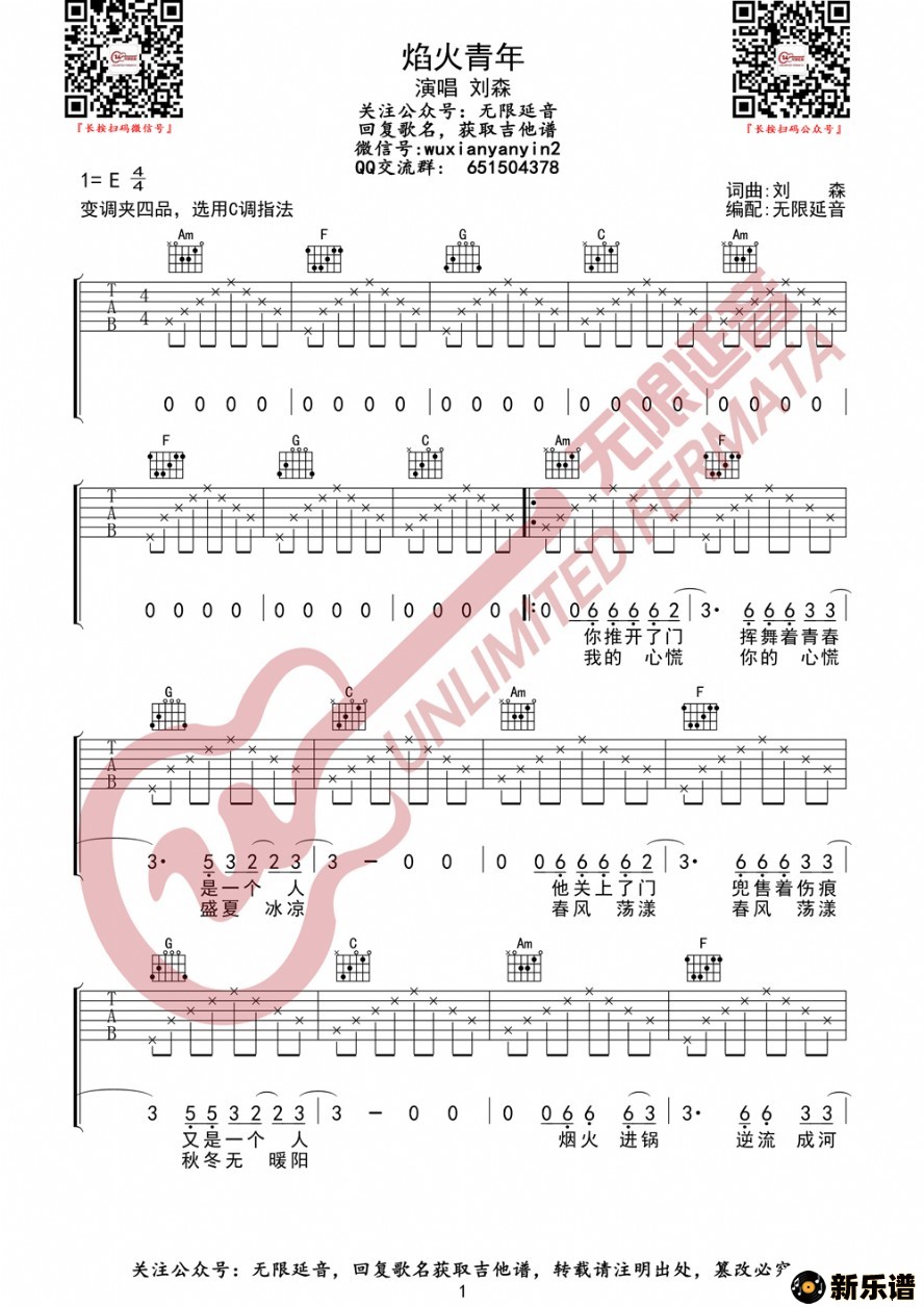 《刘森 焰火青年 吉他谱》吉他谱 刘森-无限延音制谱