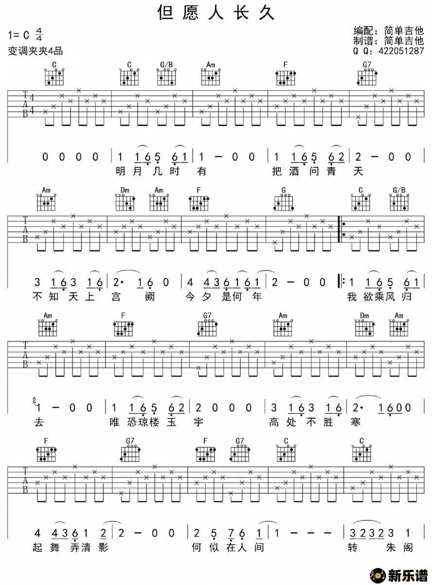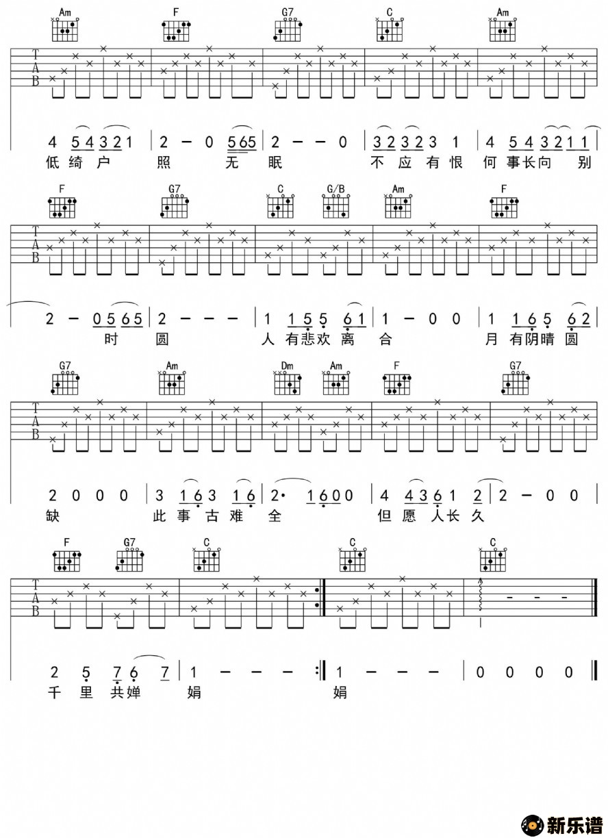 王菲演唱的但愿人长久歌词,但愿人长久吉他谱.