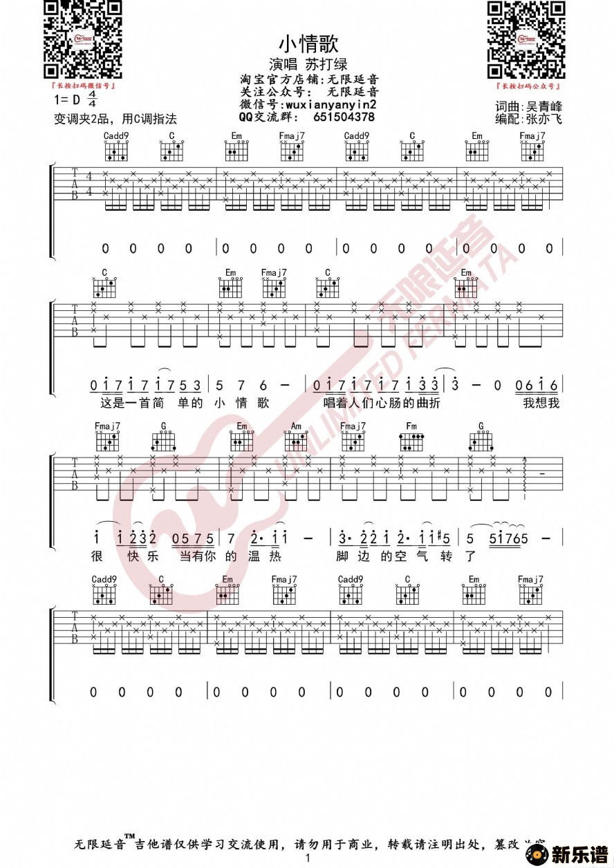 《小情歌 苏打绿 吉他谱》吉他谱 苏打绿-无限延音制谱