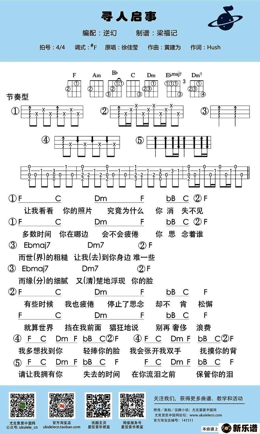 徐佳莹演唱的寻人启事歌词,寻人启事吉他谱.