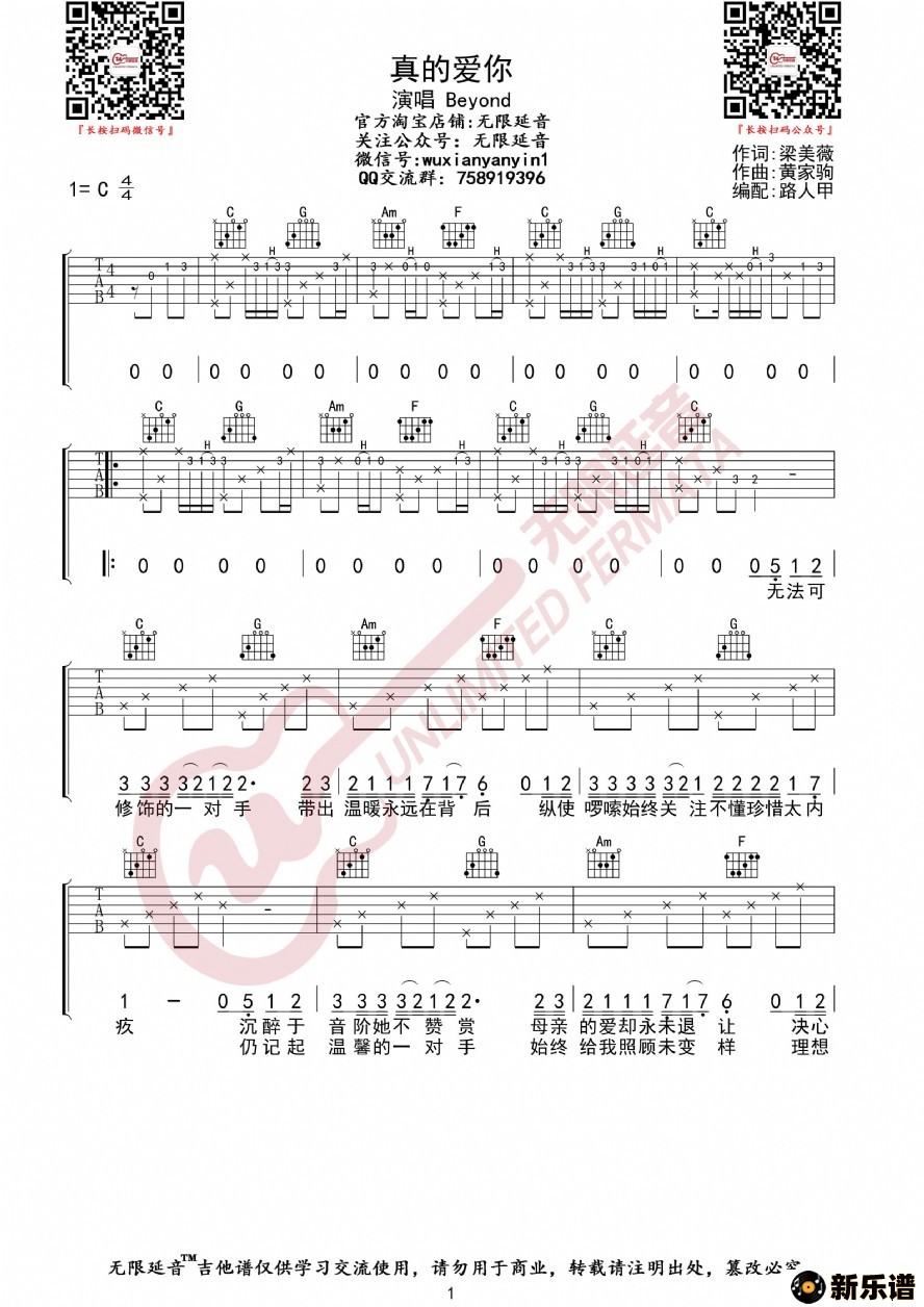 《beyond 真的爱你 吉他谱》吉他谱 beyond-无限延音制谱