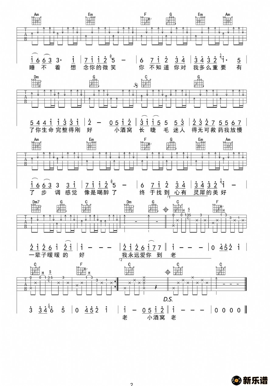 > 《小酒窝》吉他谱c调简单版吉他谱