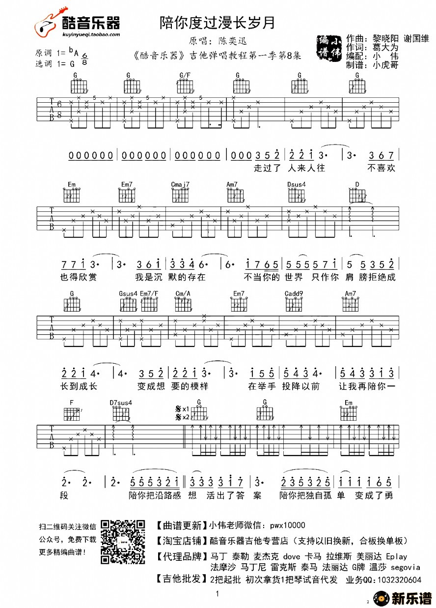 《陪你度过漫长岁月》吉他谱 陈奕迅