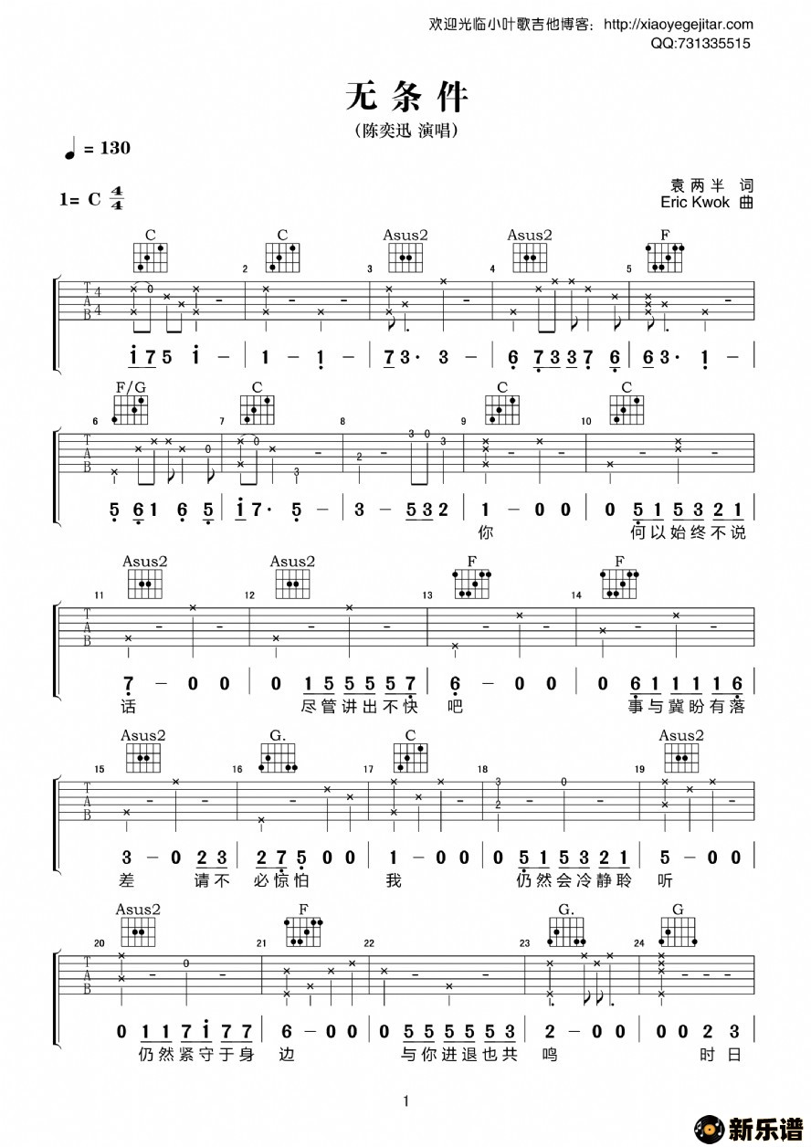 陈奕迅演唱的无条件歌词,无条件吉他谱.