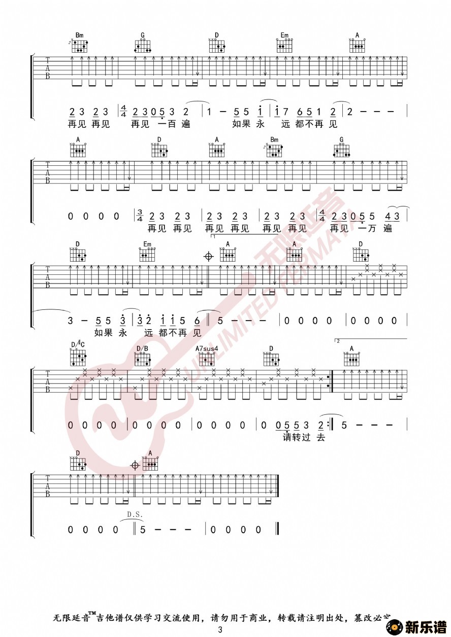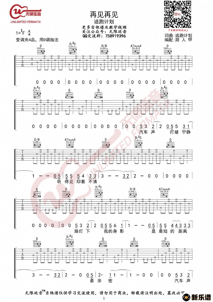 《逃跑计划 再见再见 吉他谱》吉他谱 逃跑计划-无限延音制谱