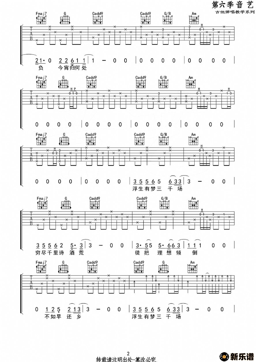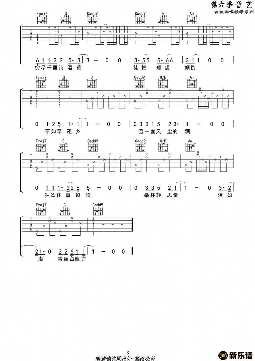 此吉他谱由新乐谱会员
