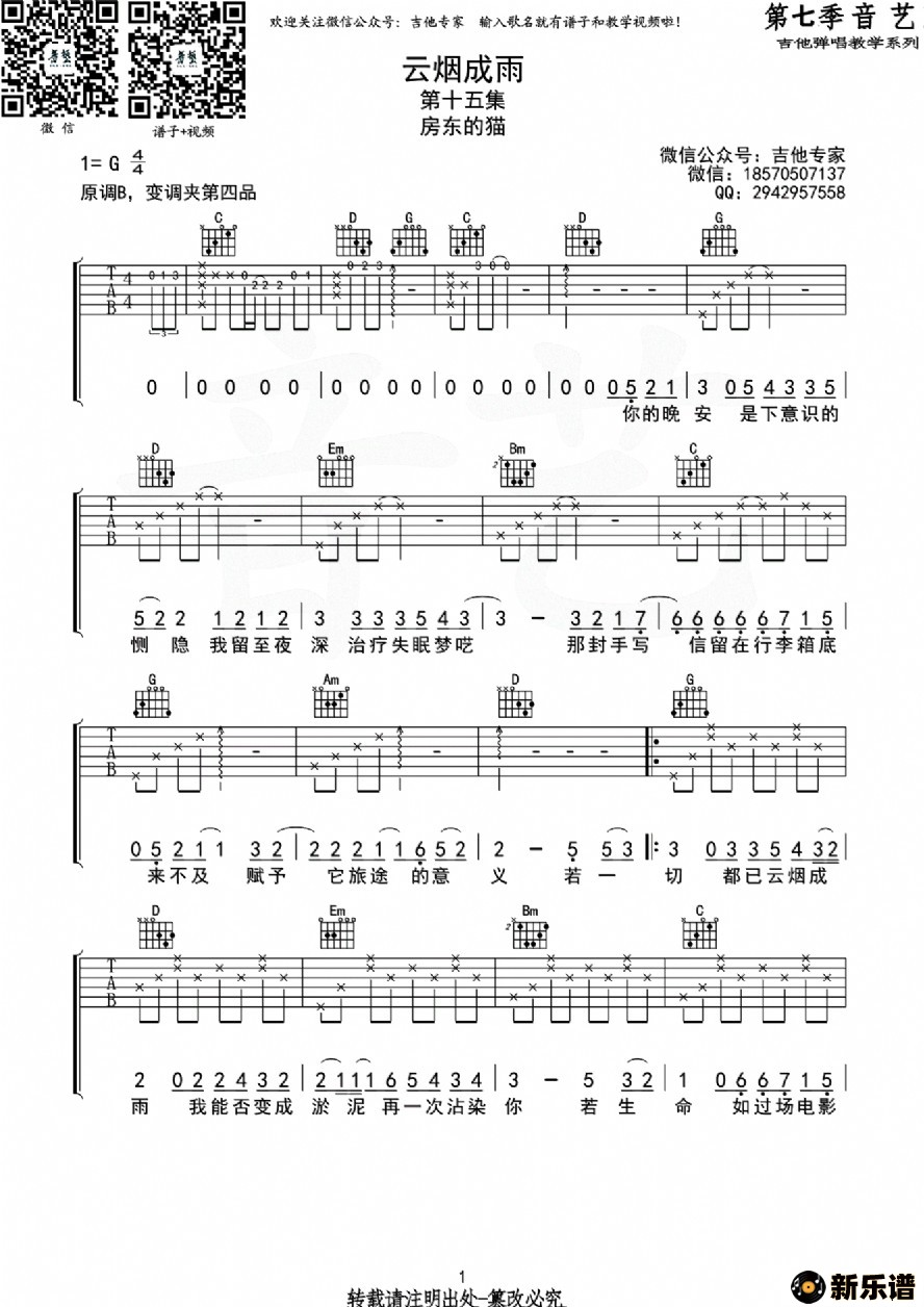 房东的猫 云雨成烟 吉他谱吉他谱
