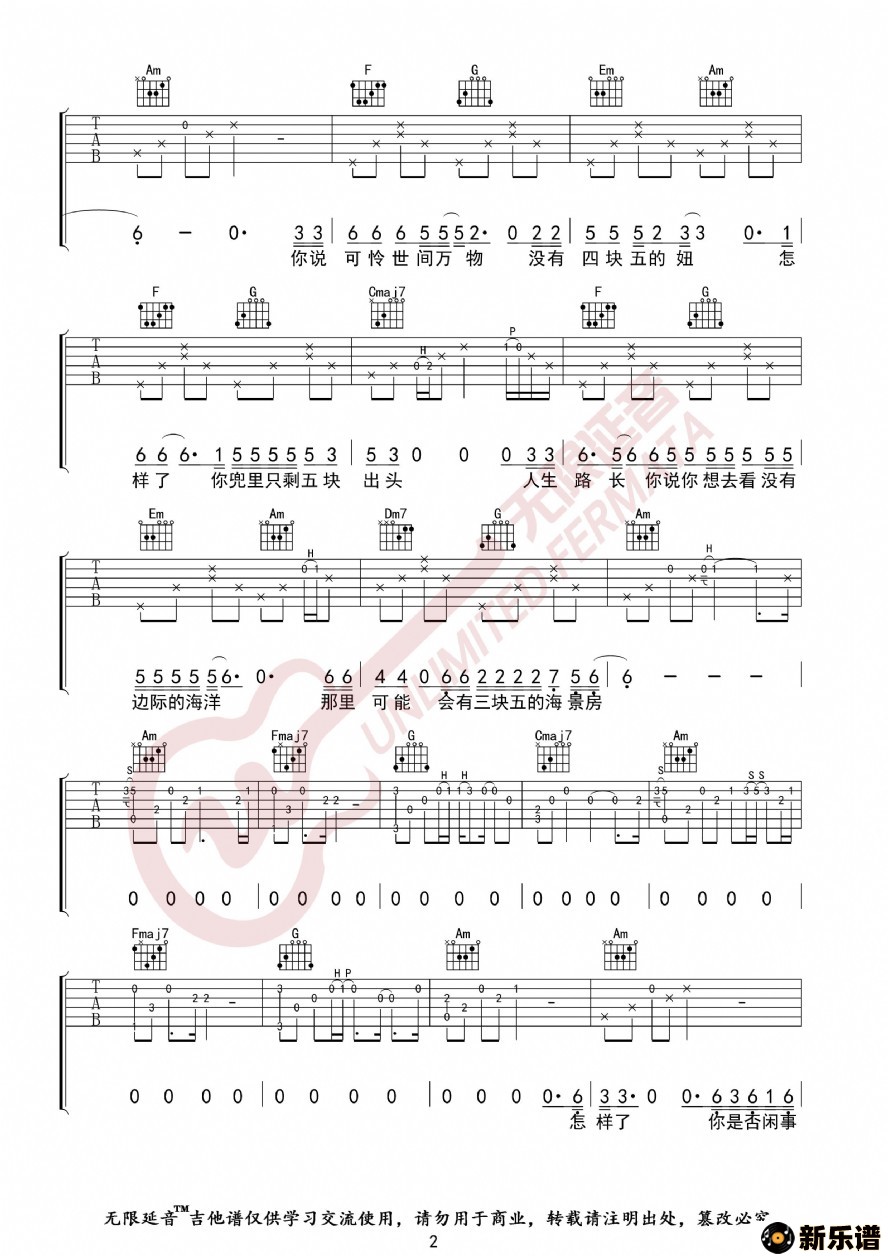 《隔壁老樊 四块五 吉他谱》吉他谱 隔壁老樊-无限延音制谱