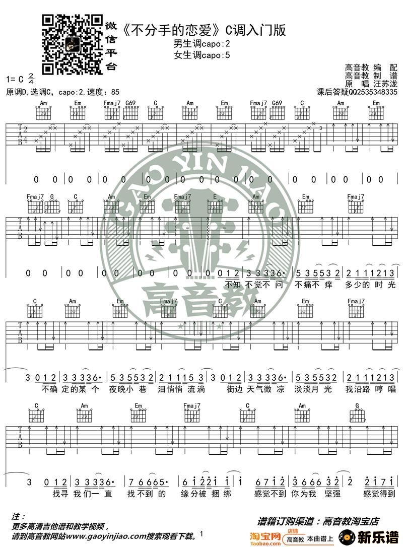 《不分手的恋爱》吉他谱c调入门版 汪苏泷 高音教编配 猴哥吉他教学汪苏泷 汪苏泷演唱的《不分手的恋爱》吉他谱c调入门版 汪苏泷 高音教编配 猴哥吉他教学歌词,《不分手的恋爱》吉他谱c调入门版 汪苏泷 高音教编配 猴哥吉他教学吉他谱. 此吉他谱由新乐谱会员 高音教 上传