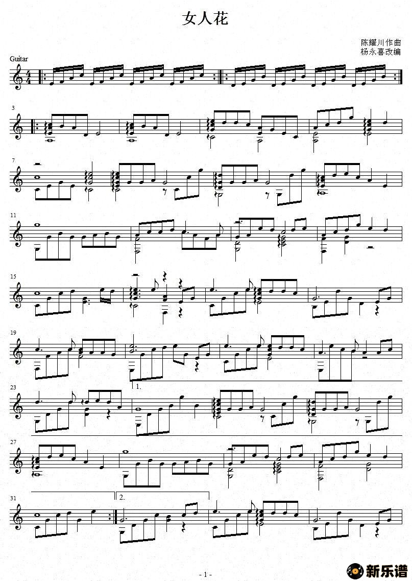 > 女人花吉他谱