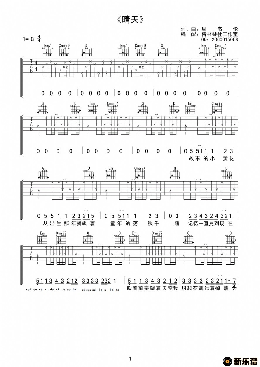 周杰伦演唱的晴天歌词,晴天吉他谱.