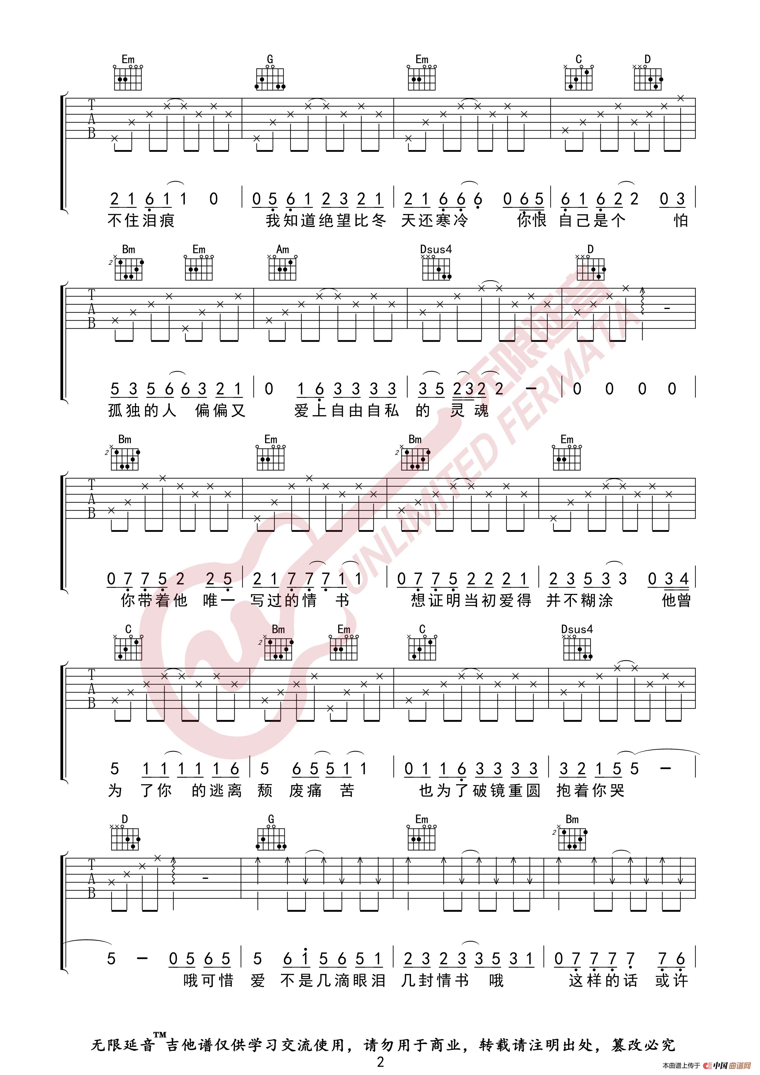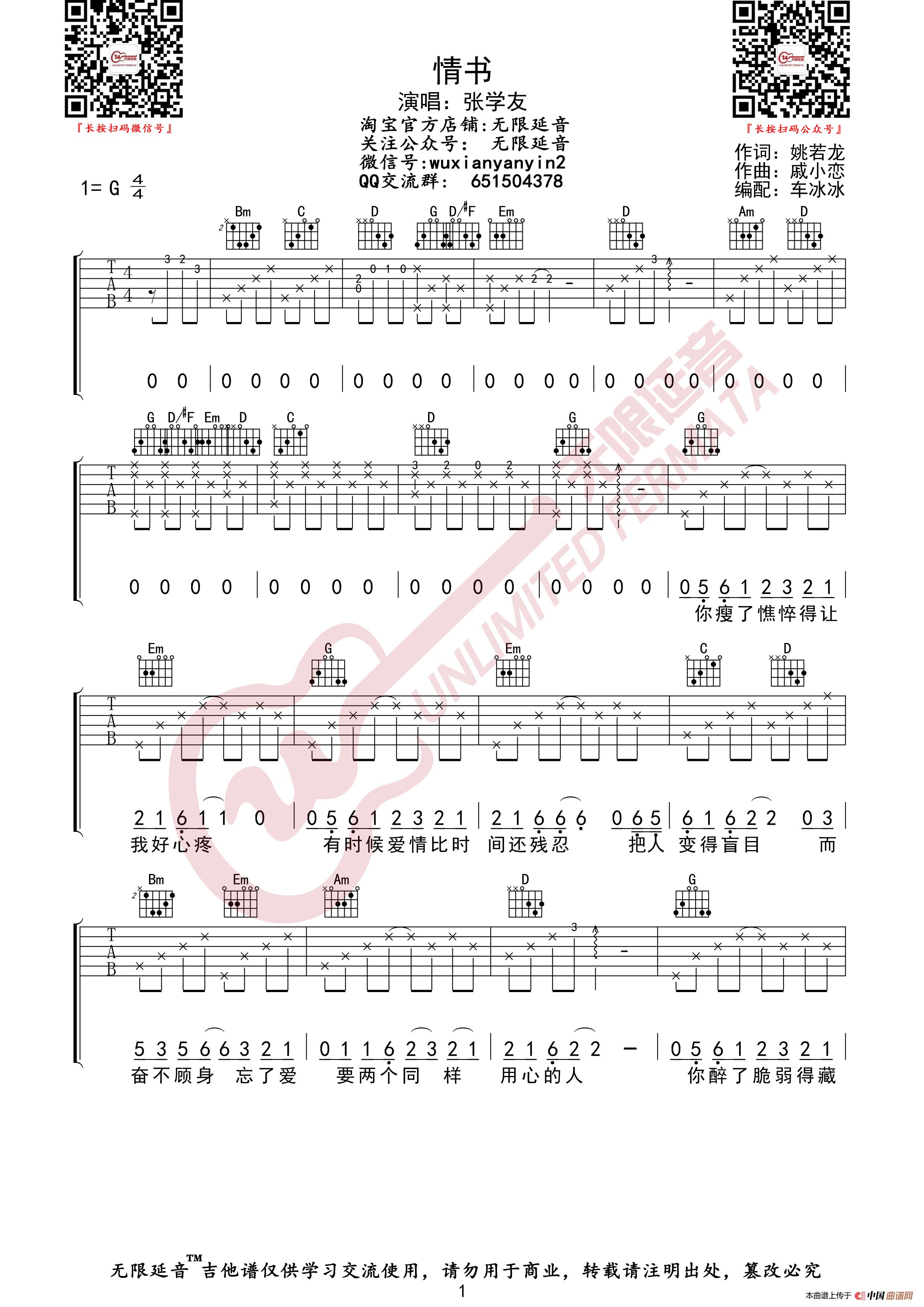 《张学友 情书 吉他谱》吉他谱 -无限延音制谱