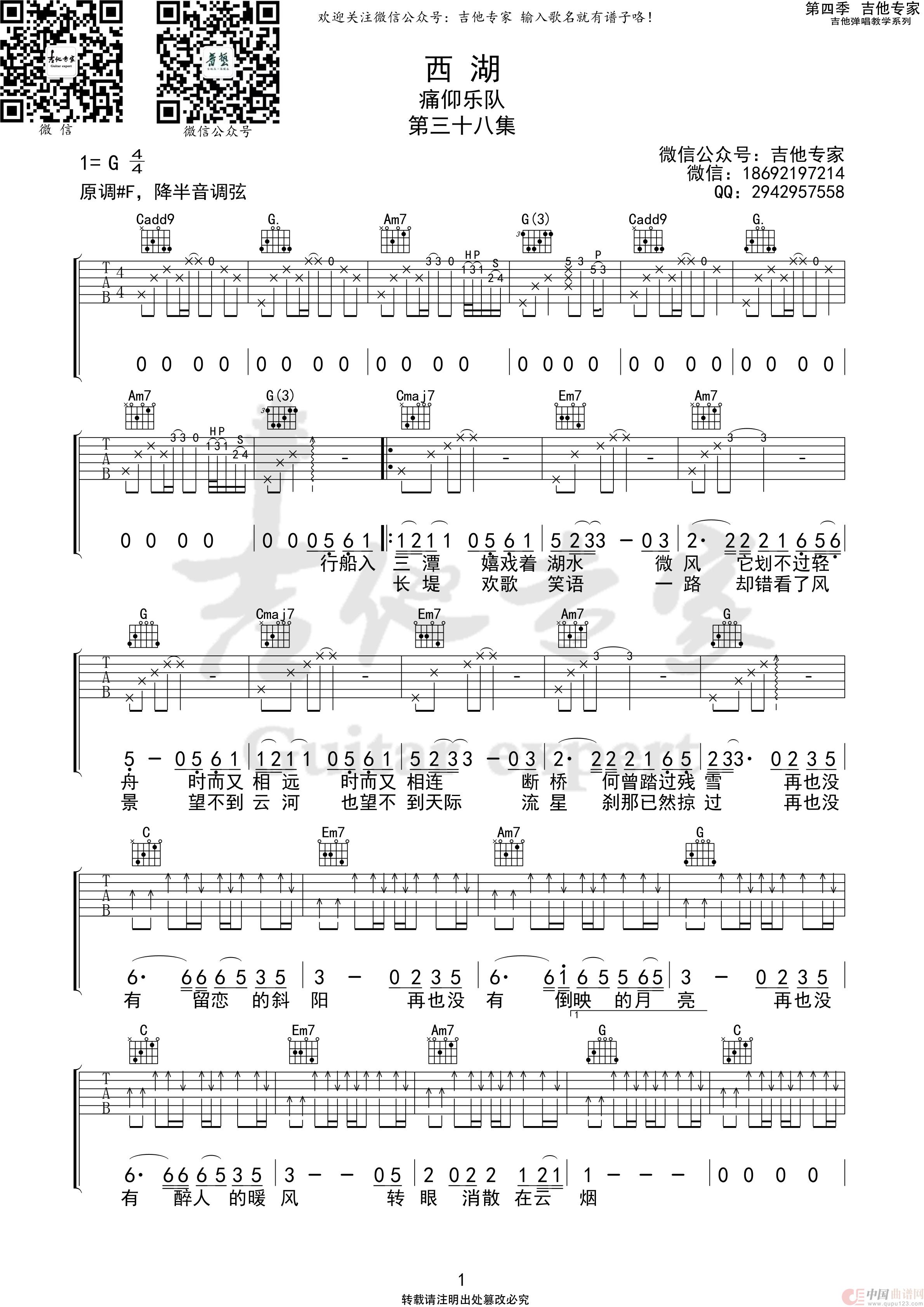 《西湖》吉他谱 -吉他专家制谱