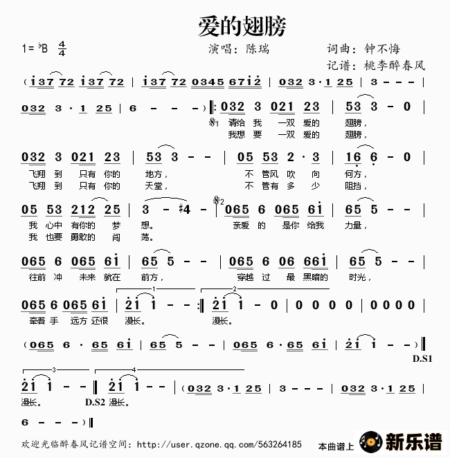 《爱的翅膀》最新曲谱 陈瑞-桃李醉春风制谱