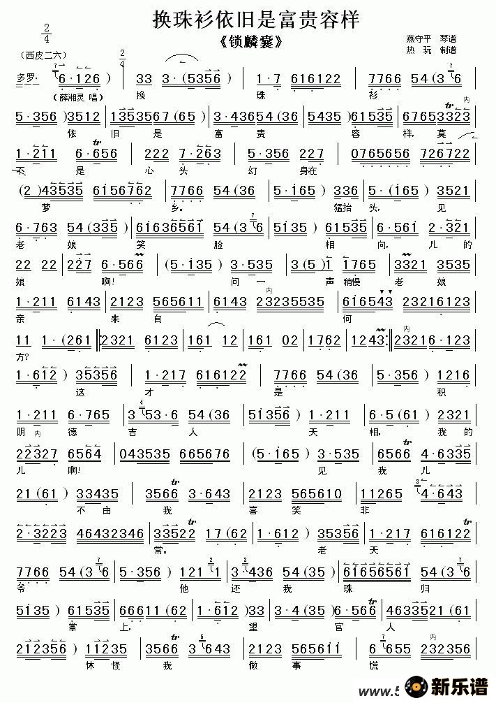 换珠衫依旧是富贵模样/ 锁麟囊 相关曲谱