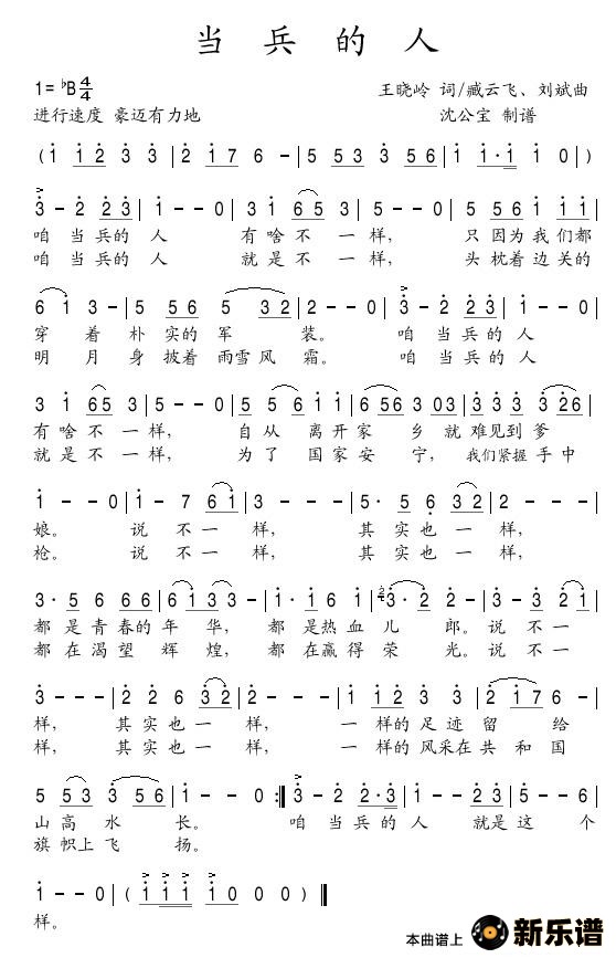 > 当兵的人最新曲谱