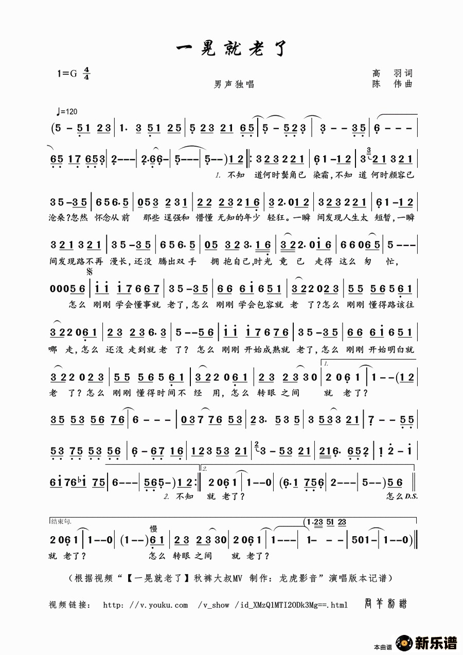 《一晃就老了》最新曲谱 秋裤大叔-君羊制谱
