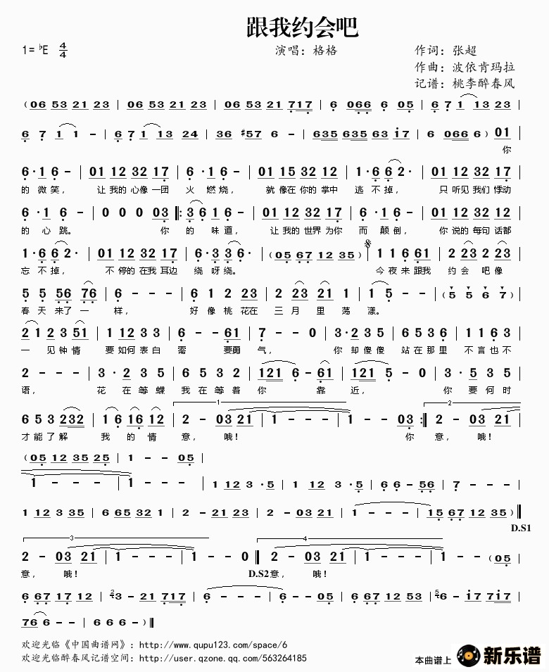 《跟我约会吧》最新曲谱 格格-桃李醉春风制谱
