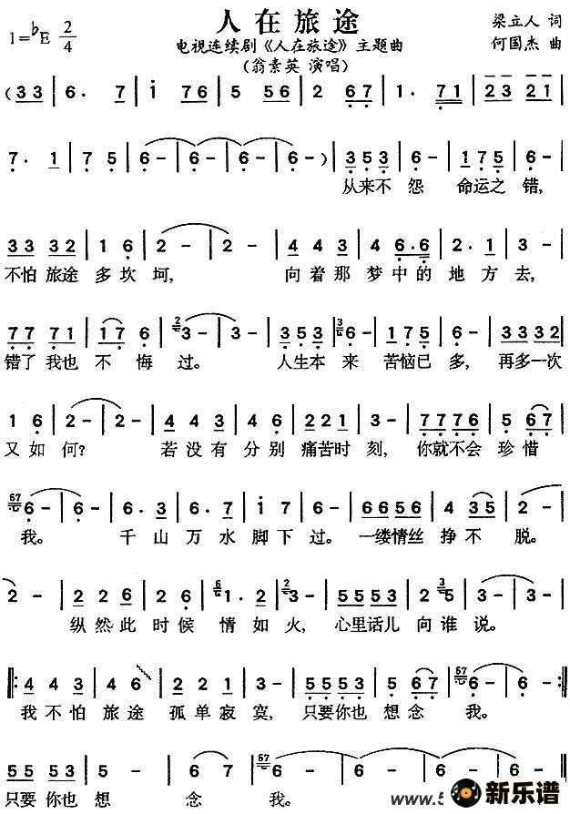《人在旅途(同名电视剧主题曲)》最新曲谱 翁素英