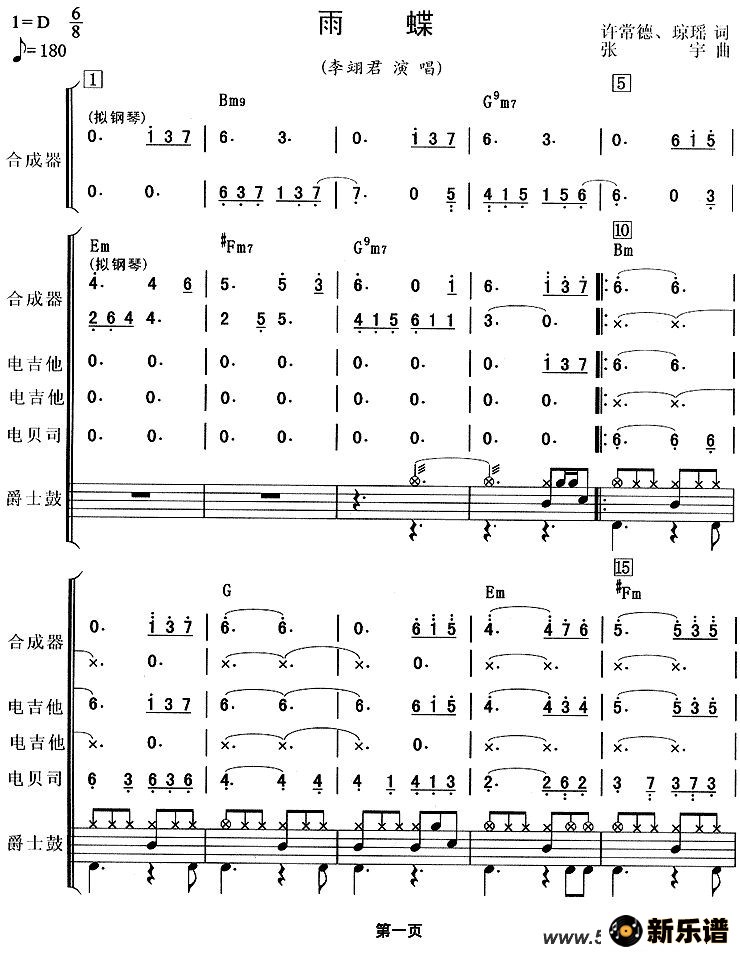 《雨蝶(电视剧《还珠格格》主题曲、乐队总谱)》最新曲谱