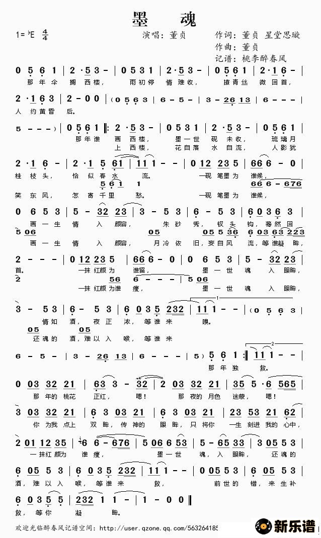 董贞演唱的墨魂歌词,墨魂最新曲谱.