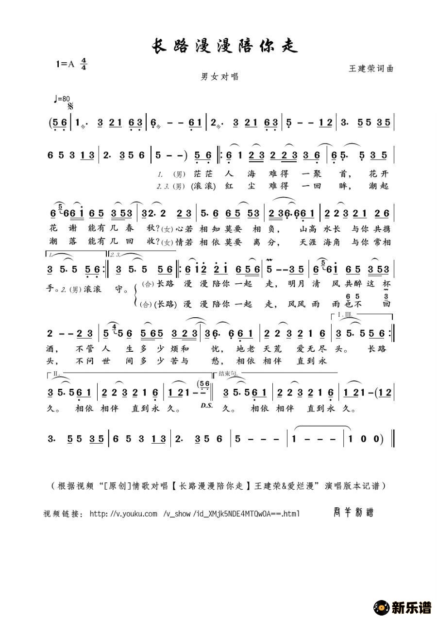 《长路漫漫陪你走》最新曲谱 王建荣、爱烂漫-君羊制谱
