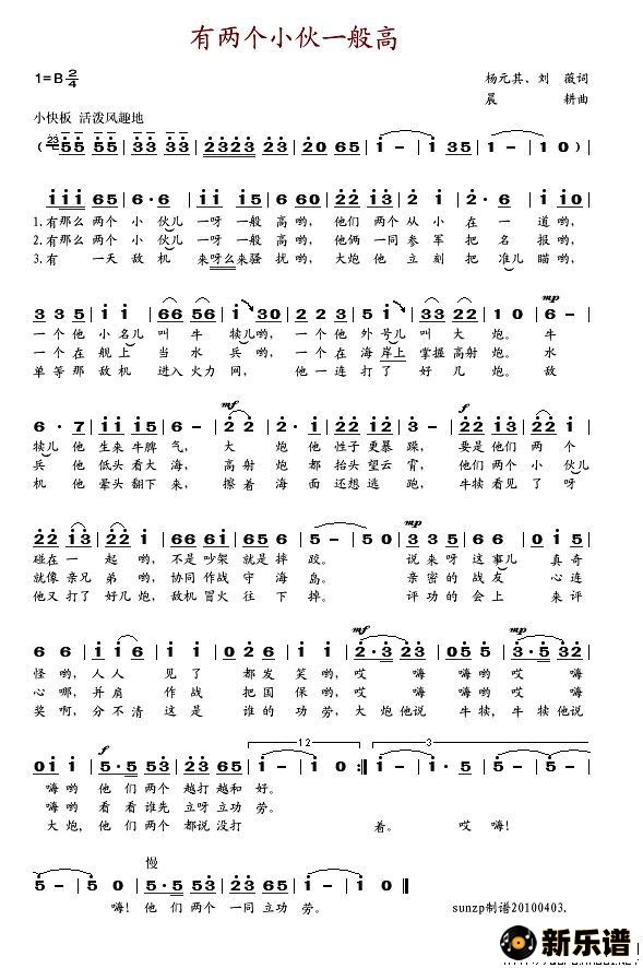 马国光演唱的有两个小伙一般高歌词,有两个小伙一般高最新曲谱.