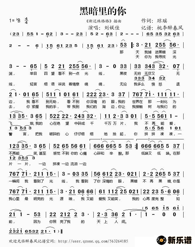 黑暗里的你/刘娱佳 新还珠格格 相关曲谱