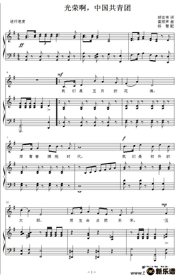 作词:胡宏伟 作曲:雷雨声(共青团团歌 杨慧配)