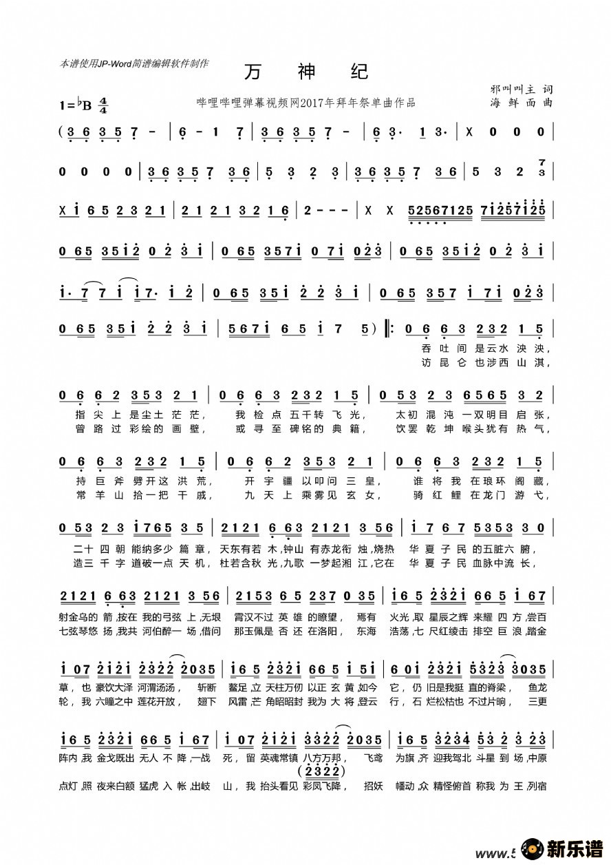 星尘演唱的万神纪歌词,万神纪最新曲谱.