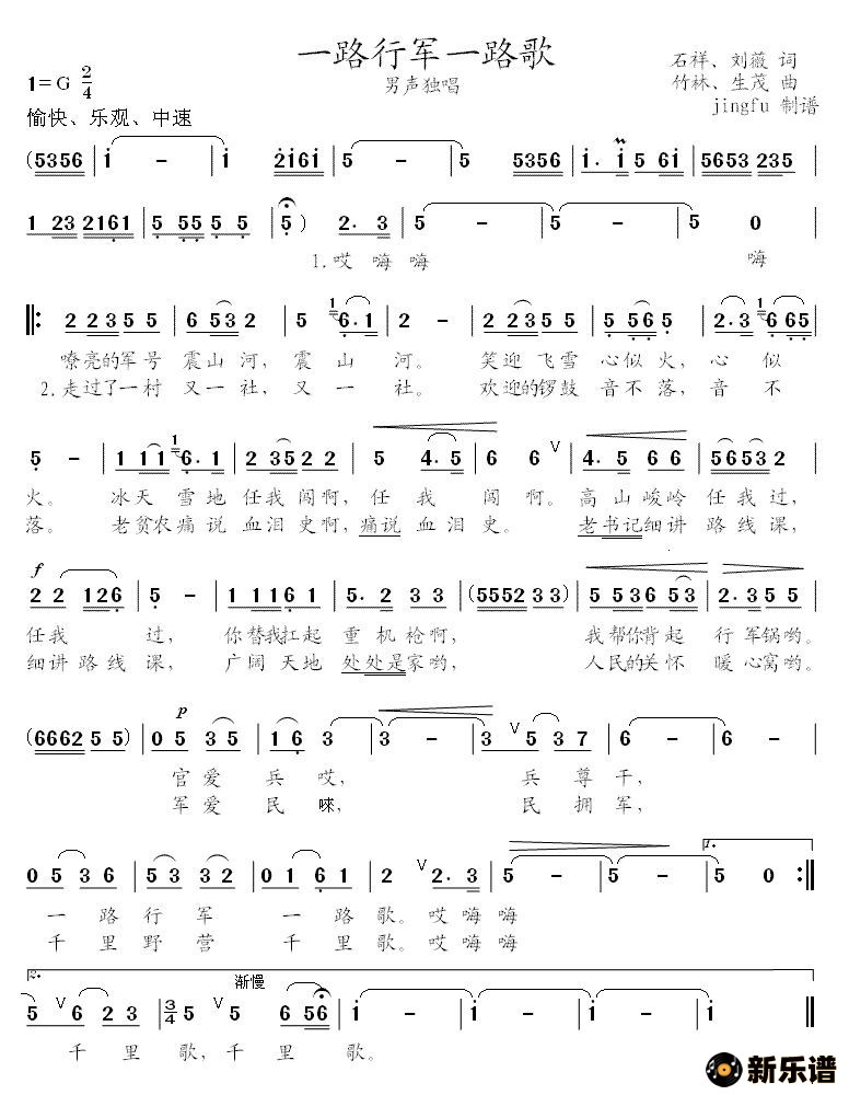 > 一路行军一路歌最新曲谱
