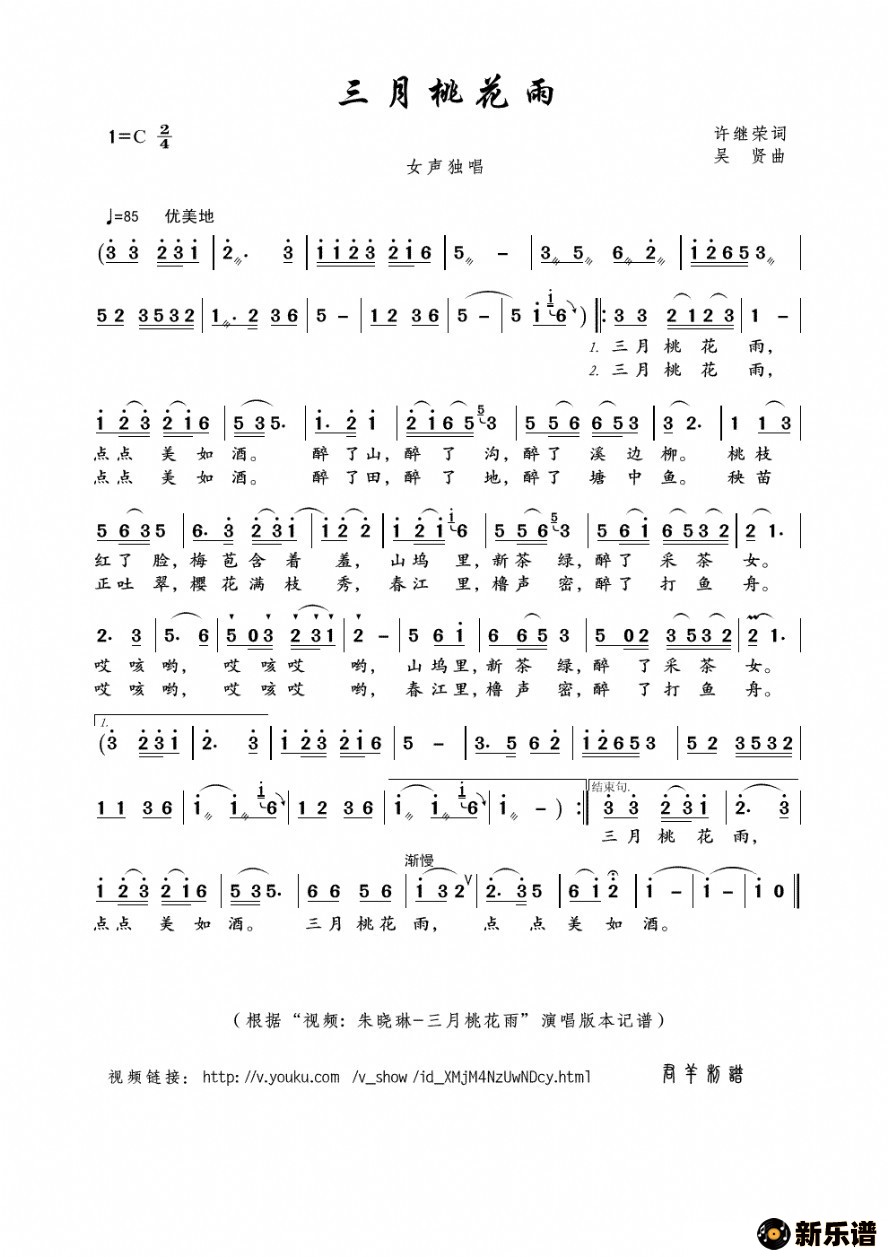 《三月桃花雨》最新曲谱 朱晓琳-君羊制谱