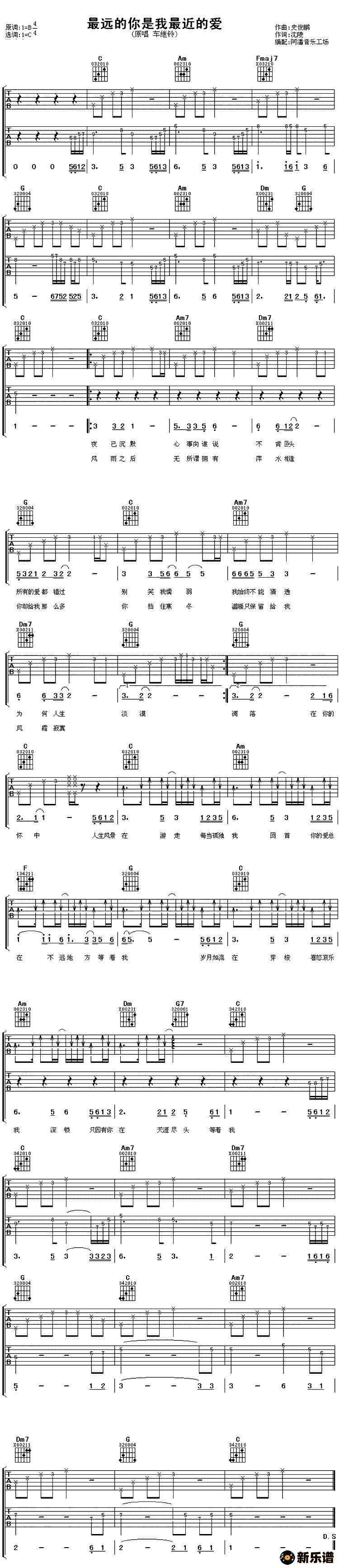 《最远的你是我最近的爱》最新曲谱 车继铃
