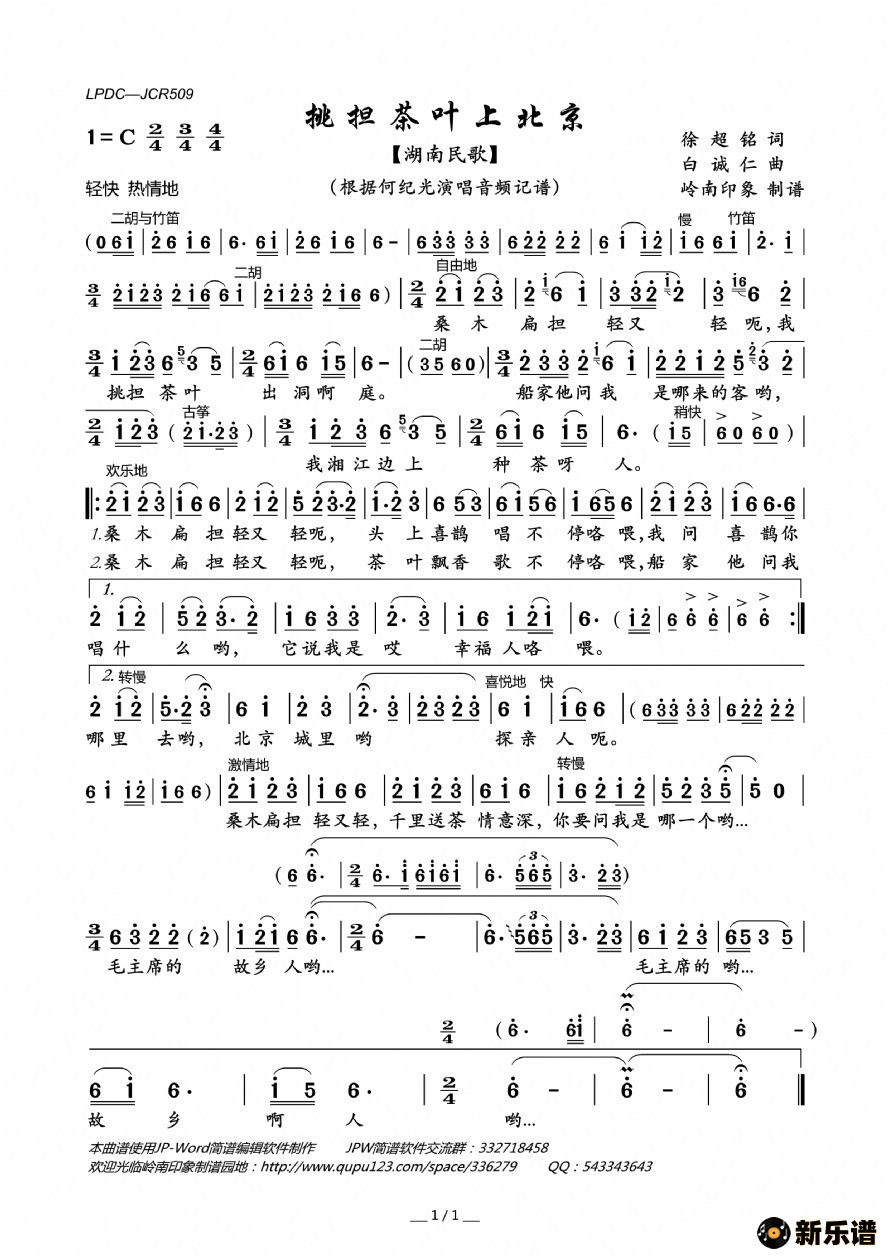 《挑担茶叶上北京》最新曲谱 何纪光-岭南印象制谱