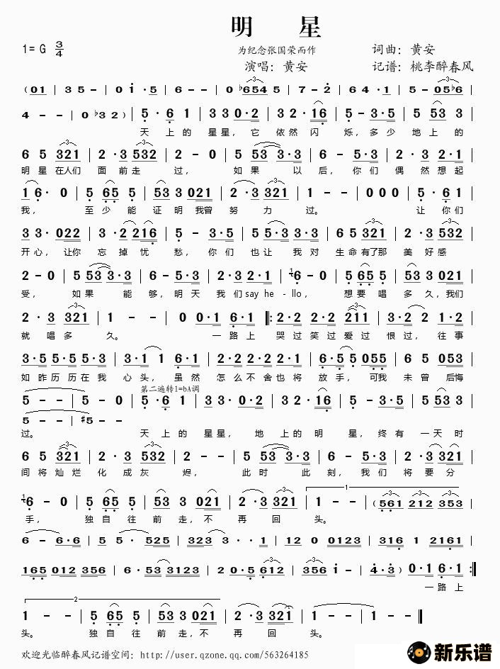 《明星》最新曲谱 黄安-桃李醉春风制谱