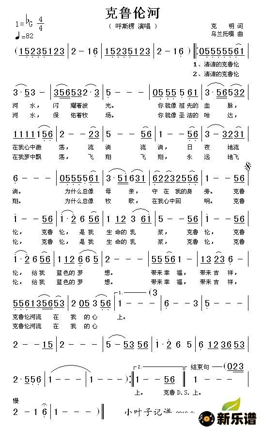 《克鲁伦河》最新曲谱 呼斯楞-小叶子制谱