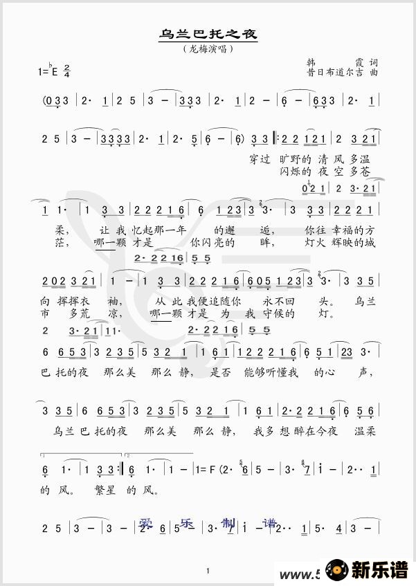 龙梅演唱的乌兰巴托之夜歌词,乌兰巴托之夜最新曲谱.