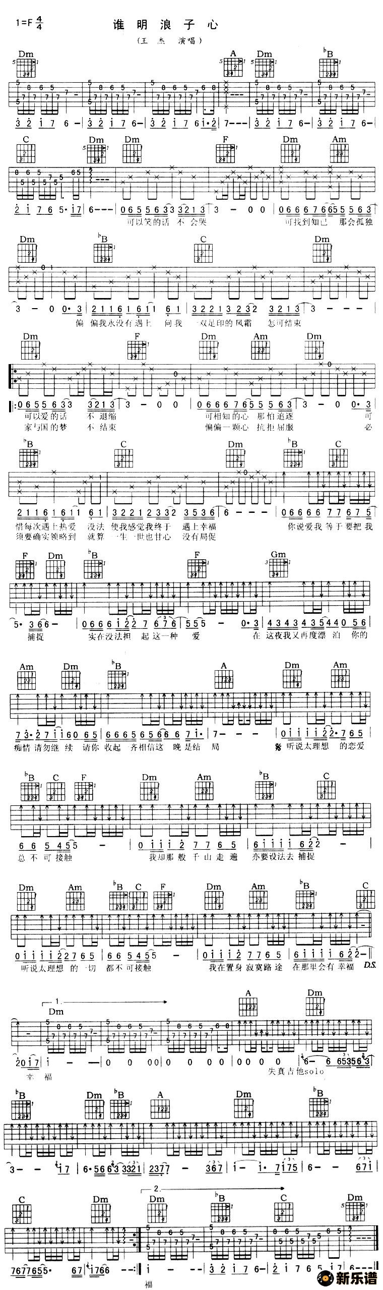 王杰演唱的谁明浪子心歌词,谁明浪子心最新曲谱.
