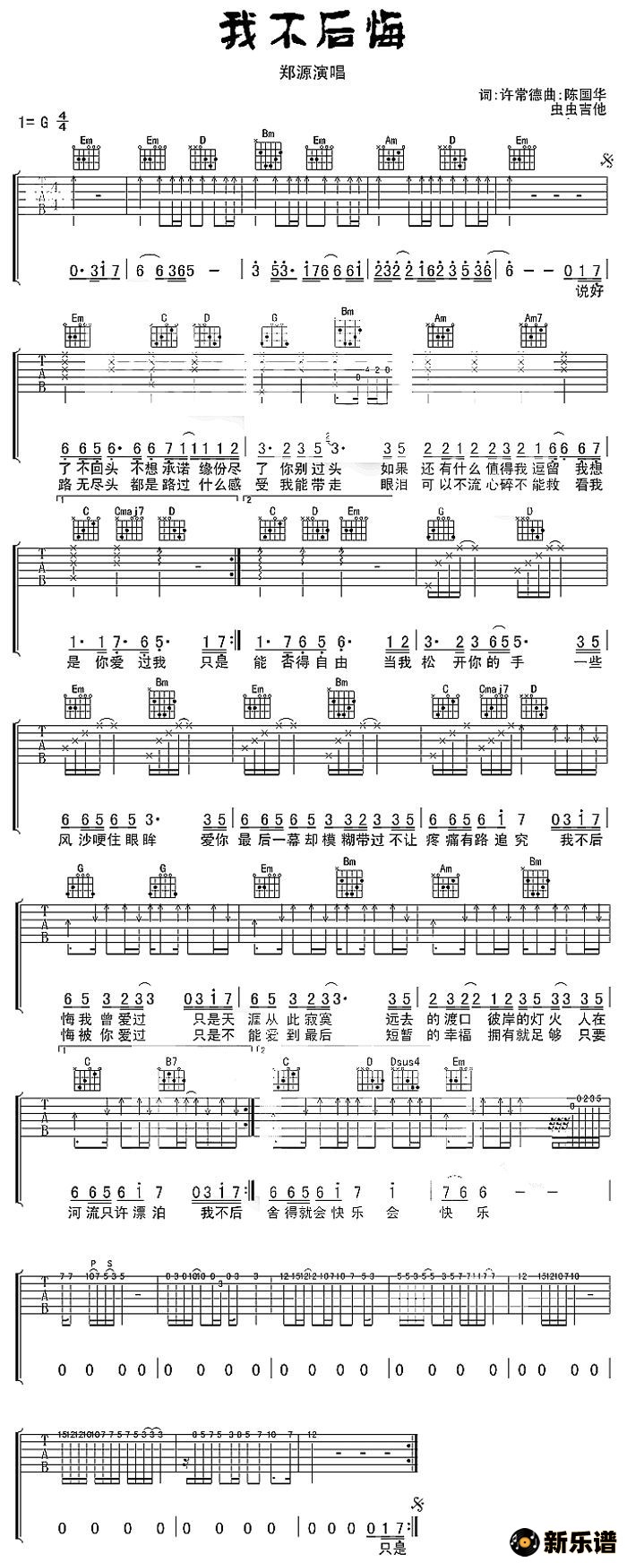 郑源演唱的我不后悔歌词,我不后悔最新曲谱.