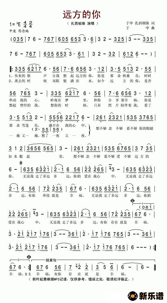 《远方的你》最新曲谱 扎西顿珠-秋叶起舞制谱