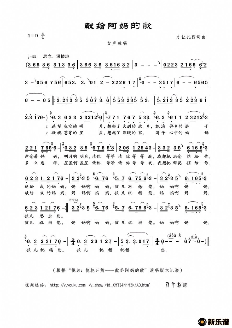 《献给阿妈的歌》最新曲谱 德乾旺姆-君羊制谱